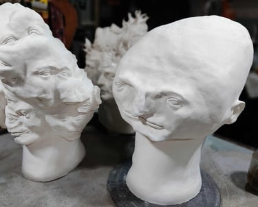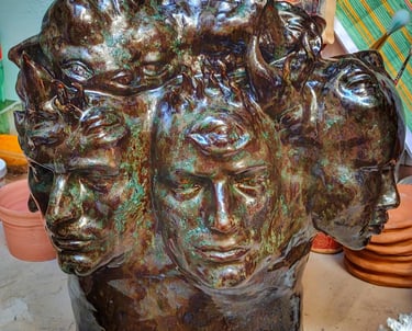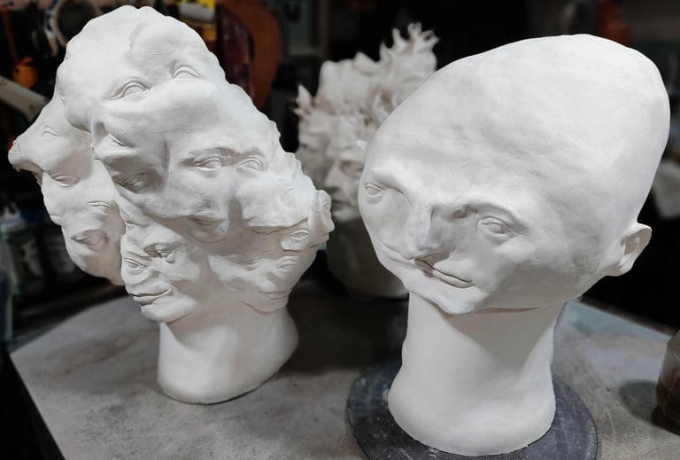 Very large ceramic giant heads and fun creatures